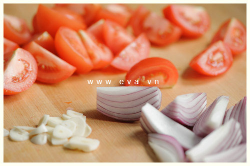 Cà chua bổ múi cau bệnh thần kinh viêm gan b. Hành xắt miếng, tỏi thái mỏng.