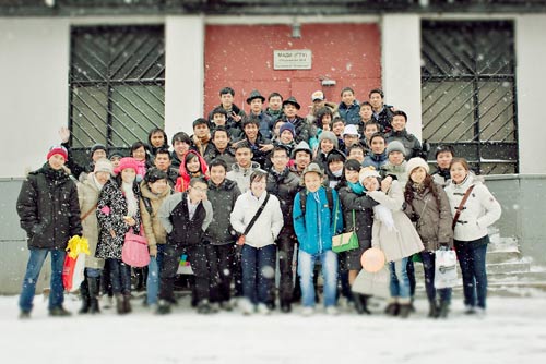 Các du học sinh được học bổng du học tại Liên bang Nga năm 2011 chụp ảnh lưu niệm cùng bạn bè ở Nga